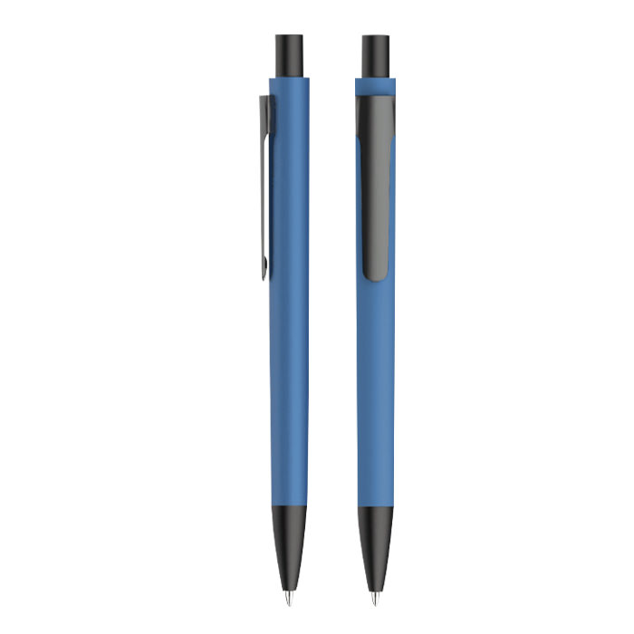 Lapicero de aluminio con acción retráctil para la punta. Incluye funda de cartón.