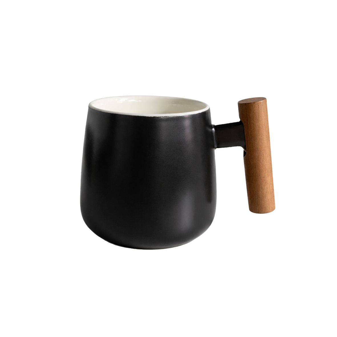 Taza cerámica negra con acabado mate e interior blanco.
