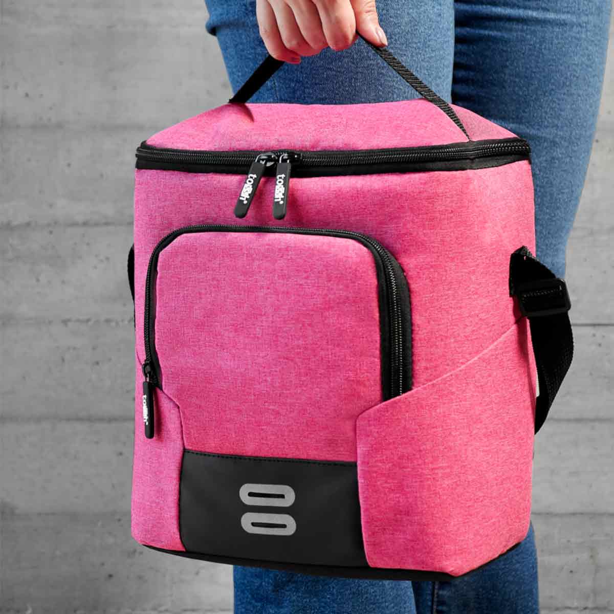 • Asa de transporte superior y correa ajustable para hombro