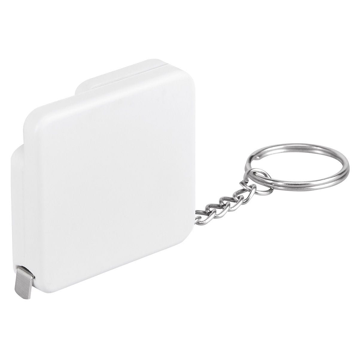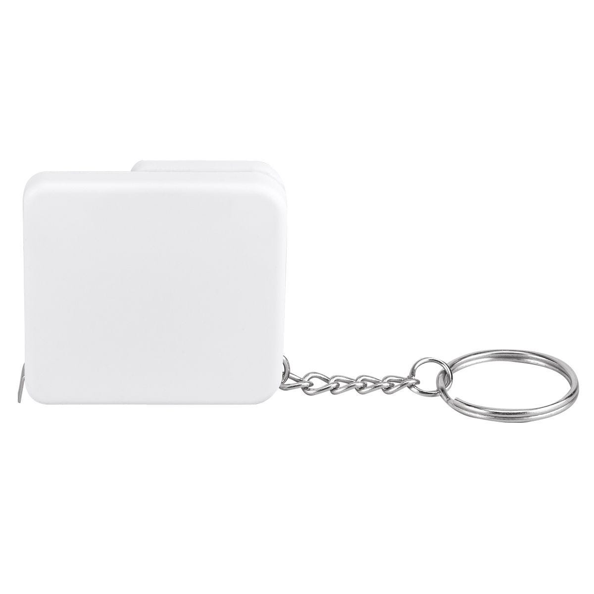 Llavero destapador con flexómetro de cinta metálica de 1 m.