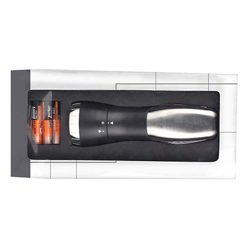 Linterna de 4 LEDS con flash. Incluye destapador, tijeras y 6 diferentes navajas con distintas funciones. Incluye 3 baterías AAA.