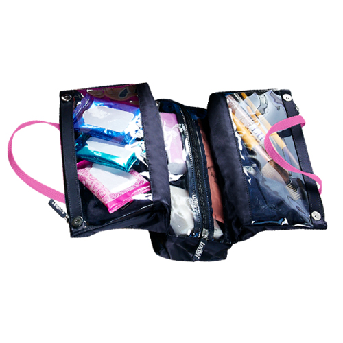 Cosmetiquera con 3 Compartimentos internos con cierre.  Tamaño 25 * 17 * 5 cm.